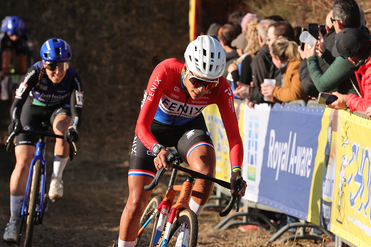 Puck Pieterse soloed to her first 2025-2026 UCI World Cup victory in Maasmechelen, Belgium. “It’s a big relief to win a World Cup again, last cyclo-cross season I couldn’t win one and it made me realize how special it is as well in ‘cross to win a World Cup,” she said after the race.
